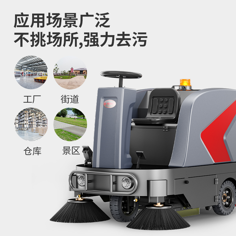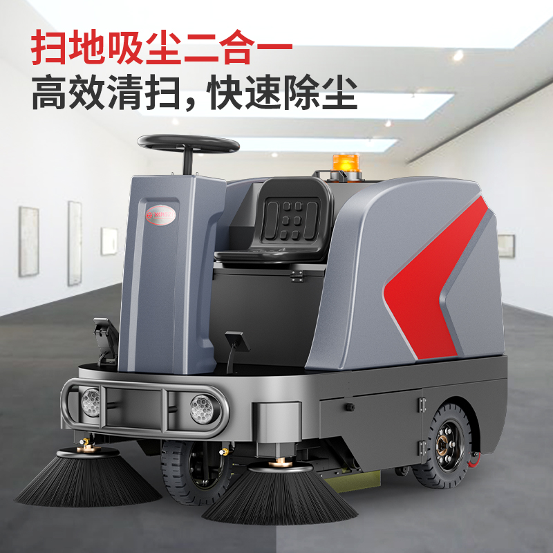 揚子駕駛式商用/工業掃地機,1小時清掃9500㎡,爬坡問題輕松解決,大容量雙箱設計,強力雙邊刷+主刷輕松清掃深度垃圾。