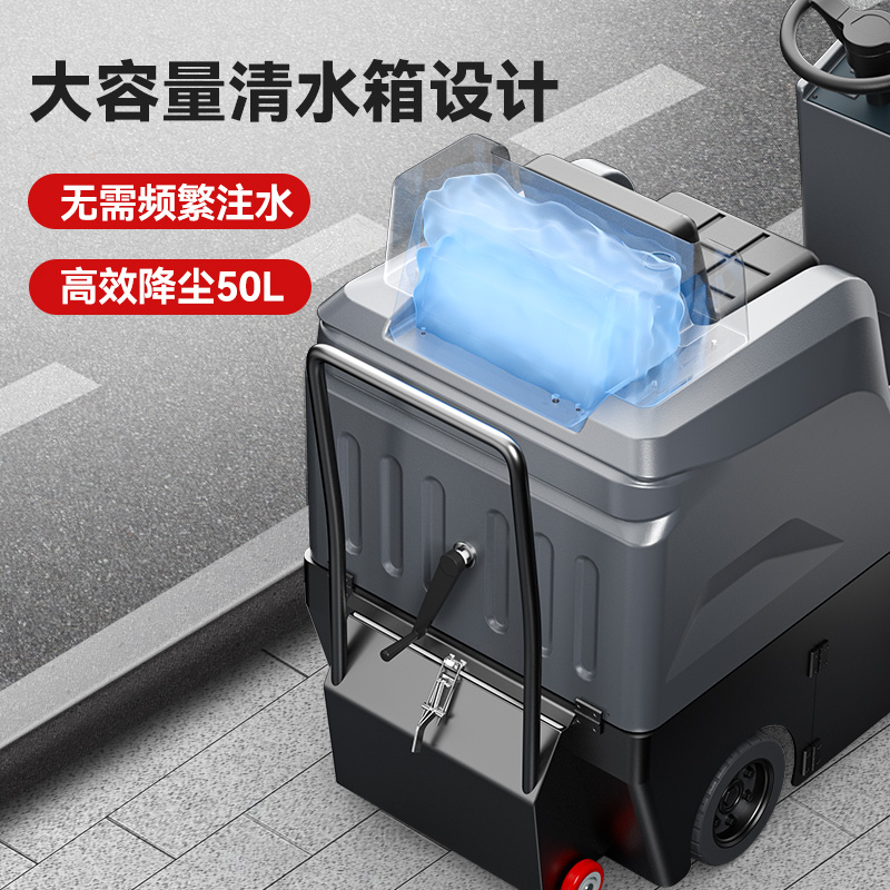 揚子YZ-S4小型駕駛式掃地機設備配備了橡膠防滑大輪;安全防水防觸充電口;前大燈防撞、防水光線強,解決了使用過程中的一些使用安全問題;噴嘴噴霧呈霧狀水花,實現了無塵清掃。強力邊